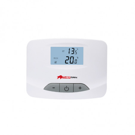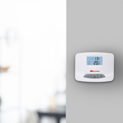 Alimentation thermostat 2 piles AAA 1,5 V (alcalines) Mémoire de sauvegarde EEPROM Alimentation du récepteur 230 VAC, 50/60 Hz Charge maximale 0,5 A Contacts du récepteur NO (normalement ouvert) et NC (normalement fermé Plage de réglage 5 °C à 30 °C (pas de 0,5 °C) Précision ± 0,5 °C Dimensions thermostat 112 × 86 × 22,7 mm (montage en saillie) Indice de protection IP20 Certification CE
