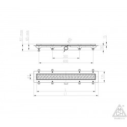 Longueur 550 mm Largeur 63 mm Hauteur 65 mm Hauteur du cadre 15 mm Couleur Gris Type de grille KLASIK brillante Matériau Polypropylène, acier inoxydable Type de sortie Horizontale Diamètre de sortie 40 mm Débit (l/min) 30 – 38 Pieds télescopiques Oui Classe de charge K3 Charge maximale 300 kg